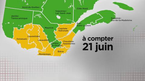 La Capitale-Nationale et Chaudière-Appalaches, qui doivent passer au vert le 28 juin comme le reste des régions en zone jaune, font état de seulement deux et cinq cas supplémentaires.